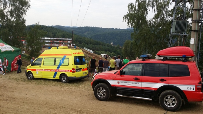V sobotu a v neděli zajišťovala Zdravotnická záchranná služba Karlovarského kraje zdravotnický dohled a asistenci na mistrovství světa v motokrosu v Lokti. Akci jsme zajistili 4 posádkami RZP a 5 lékaři. U tratě jsme měli od provozovatele připraveno zázemí - zdravotní stan. Naši lékaři v něm mohli na místě provádět sonografické či rentgenové vyšetření. Na místě byla další desítka zdravotníků od soukromého subjektu a jedna převozová sanita. Přímo v areálu byl připraven i prostor pro přistání letecké záchranné služby.